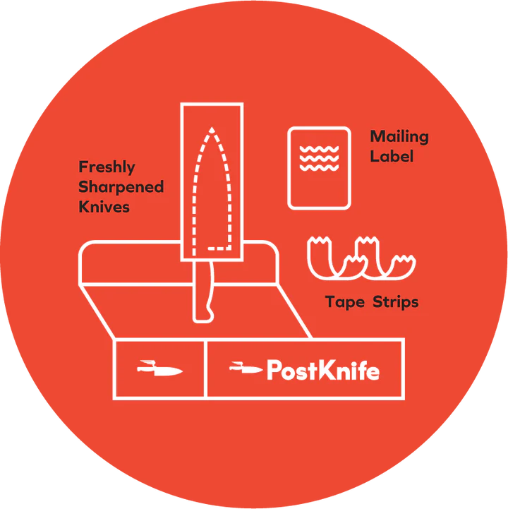 Every shipment contains your chosen set of freshly sharpened knives. Pre-paid mailing label and tape strips are included for return shipping.
